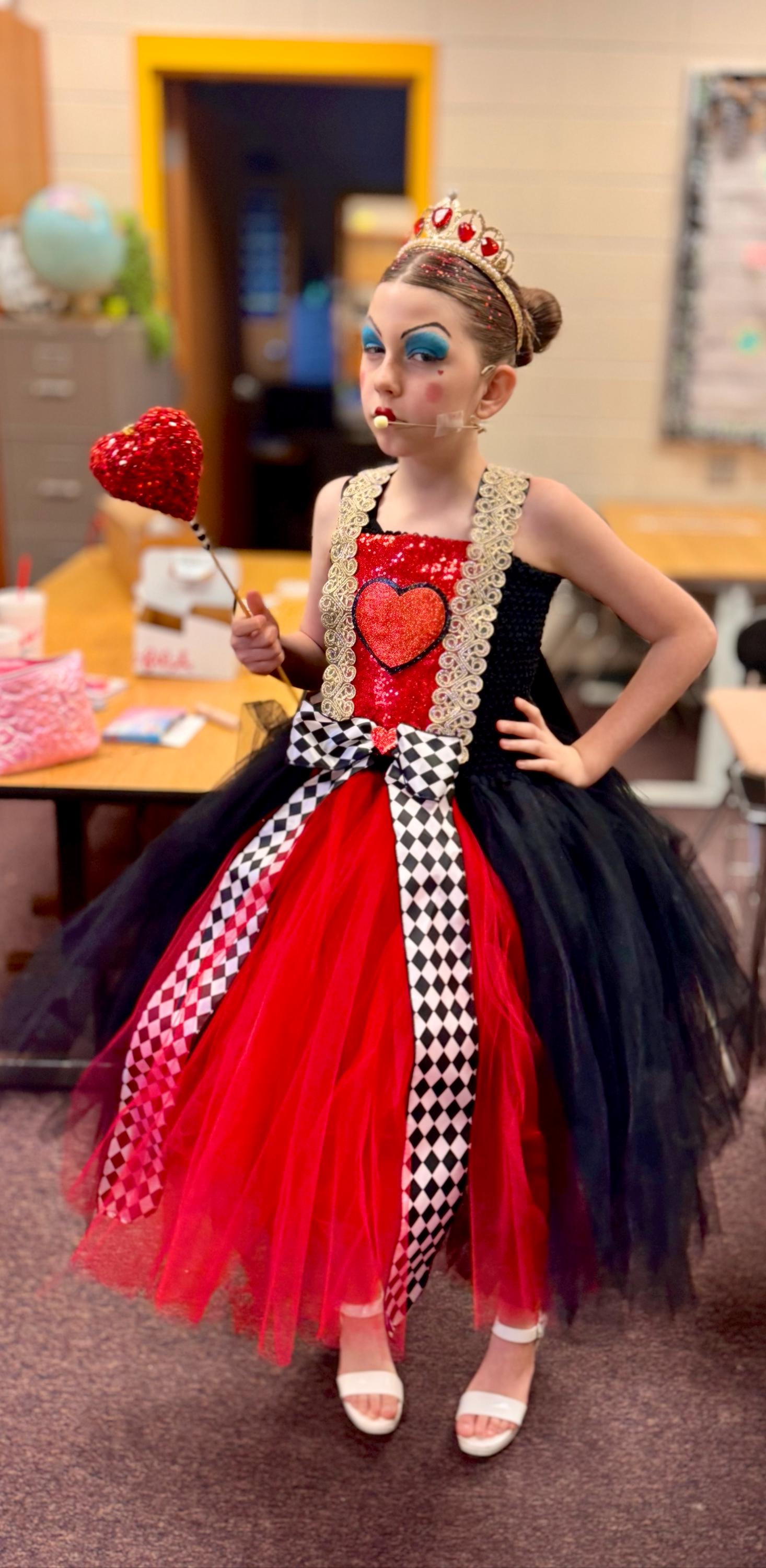 The Queen of Hearts Crown is perfect for Halloween costumes, parties, and dress-up, featuring a lightweight and comfortable headband suitable for kids and adults, with a gold heart design that adds a royal touch to any Queen of Hearts look.