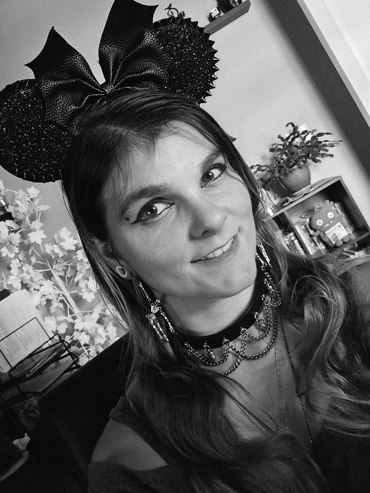 🛒 Add a touch of dark sparkle to your spooky season – grab your Goth Spikes Minnie Ears today!